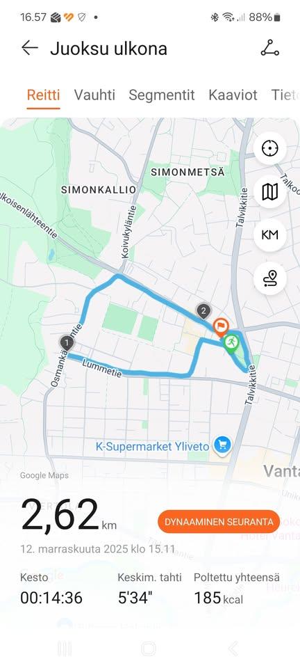 Huolto: Juoksun jälkeen mehutarjoilu. Pukuhuoneet ja suihkut ovat Tikkurilan Urheilutalolla.