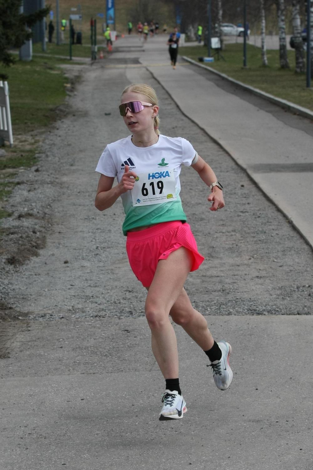 Espoon Tapioiden Katariina Kärkkäinen oli naisten kympin nopein.