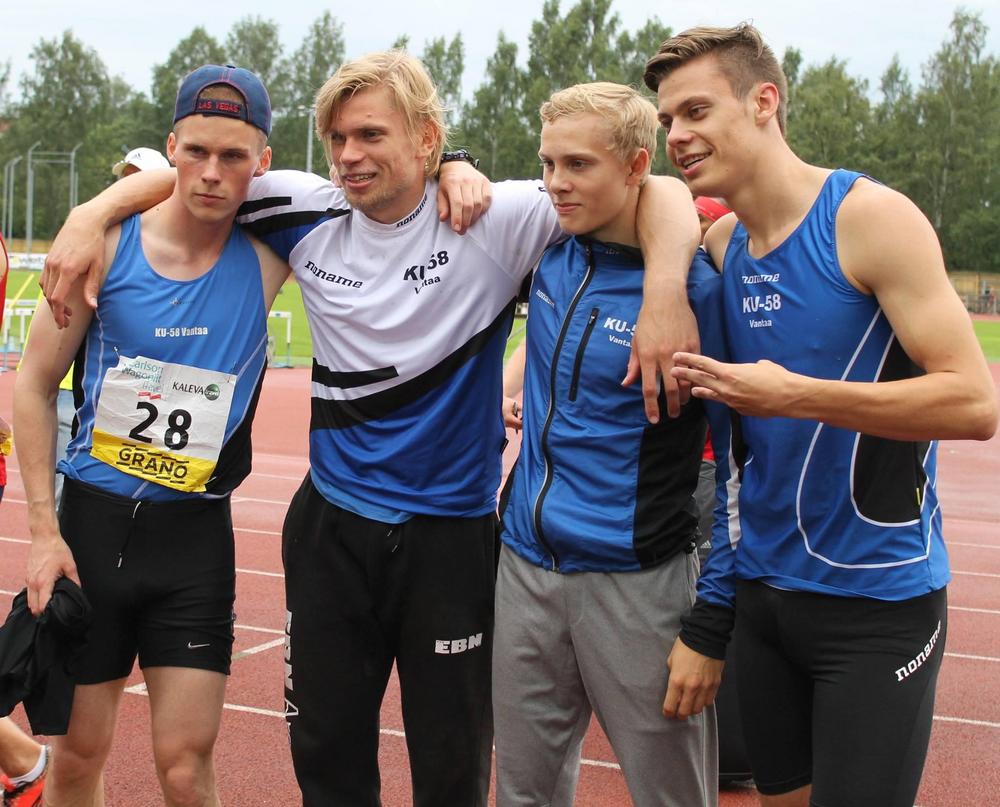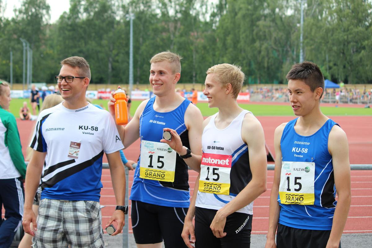 Kilpailujen viimeisess lajissa miesten joukkueella oli ennakkoarvion mukaan mahdollisuuksia pitkästä aikaa parhaimpaan tulokseen.Joukkueessa juoksivat sprintteri Aapo Alenius, kolmiloikkaaja Tuomas Kaukolahti, kymmenottelija Leo Uusimäki ja 800m erikoismies Ville Lampinen. Miehet tykittivät ajan 3.17.22 ja nousivat pronssille. Aika on niin kivenkova, että tämän matkan 49 vuotta vanha seuraennätys siirtyi viimein historiaan! Huomionarvoista on, että Leolle tuli kisoista kaksi SM-mitalia!