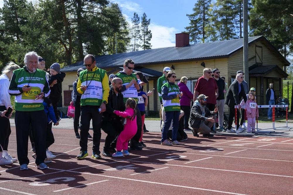 Aluksi juostiin 10-13-vuotiaiden erät sähköisellä ajanotolla ja myötätuuletkin mitattiin.