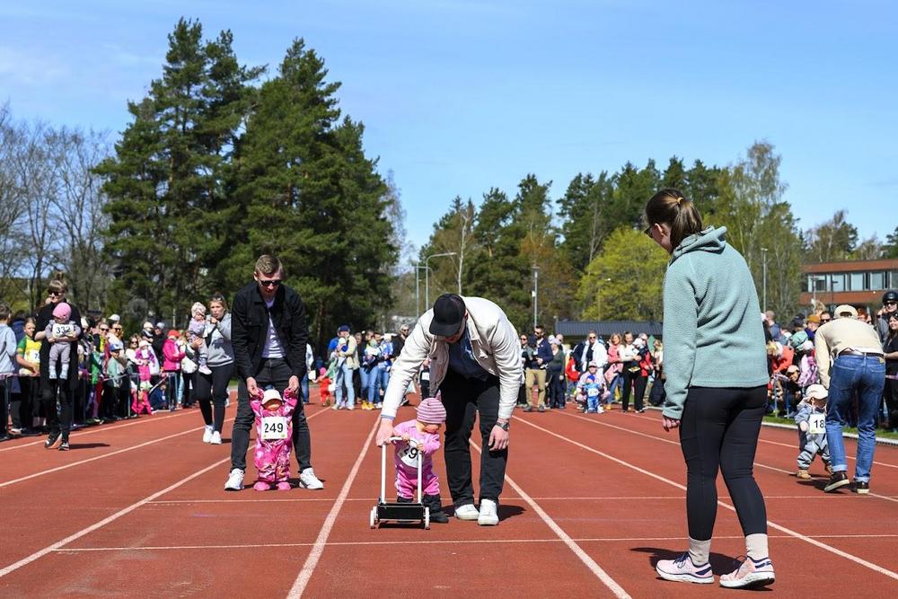 Yksivuotiaiden sarjassa (2023 syntyneet) monella oli avustaja matkassa. Apuvälineetkin sallittiin.