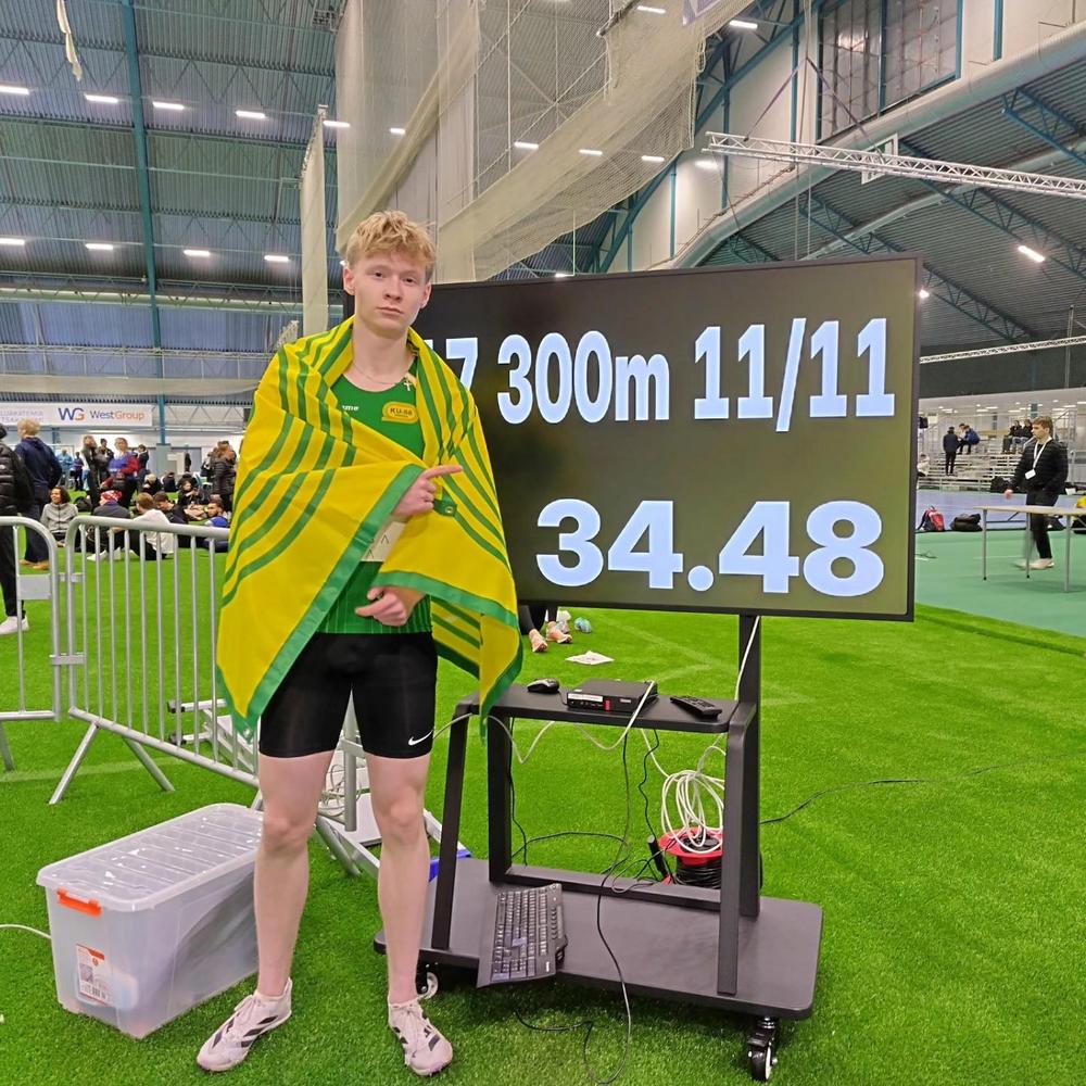 Thomas Kleemola oli 300 metrin aidoissa voittotaistelussa, mutta kompastuminen aitaan vei tällä kertaa jo varmalta näyttäneen mitalin.