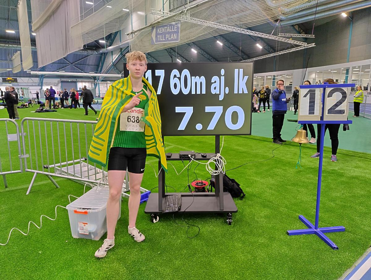 Pyry Heiskanen juoksi M17 60 metrin aitajuoksun Suomen mestariksi uudella Suomen ennätysajalla 7.70. Ennen SM-kisoja Pyry jakoi SE-ajan Rasmus Vehmaan kanssa, kunnes otti ennätyksen kokonaan omiin nimiin neljäs sadasosan parannuksella.