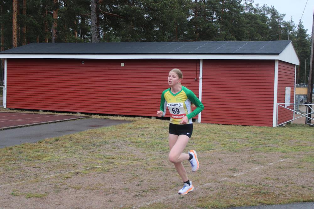 1) Salla Tompuri Kiuruveden Urheilijat 17.43, 2) Liisa Keskisalo Joensuun Kataja 18.37, 3) Hilla Ruokostenpohja Jyväskylän Kenttäurheilijat 18.37, 4) Ida Valtola Mikkelin Kilpa-Veikot 19.27, 5) Jenni Mikkonen Espoon Tapiot 19.36, 6) Miina Hänninen Jyväskylän Kenttäurheilijat 19.42, 7) Ida Sjelvgren HIFK Friidrott 19.44, 8) Lilja Öhman Turun Urheiluliitto 20.11, 9) Siina Haapala Kenttäurheilijat-58 20.17, 10) Jasmin Redman Lahden Ahkera 20.26, 11) Oona Lapila Laitilan Jyske 20.32, 12) Linda Teerikorpi Joensuun Kataja 21.14, 13) Matilda Palomäki Vähänkyrön Viesti 21.24, 14) Kielo Salo Karkkilan Pojat 21.31, 15) Ansa Valjus Karhulan Katajaiset 21.54, 16) Julia Ellä Kalannin Vankka 22.10, 17) Peppi Markkanen Karhulan Urheilijat 22.20, 18) Nanna Niittyaro Lempäälän Kisa Yleisurheilu 22.23, 19) Lise Hellberg Vehkalahden Veikot 22.39, 20) Mira Korpi Kenttäurheilijat-58 22.48, 21) Jadelle Tuohimaa Noormarkun Nopsa 23.07.
